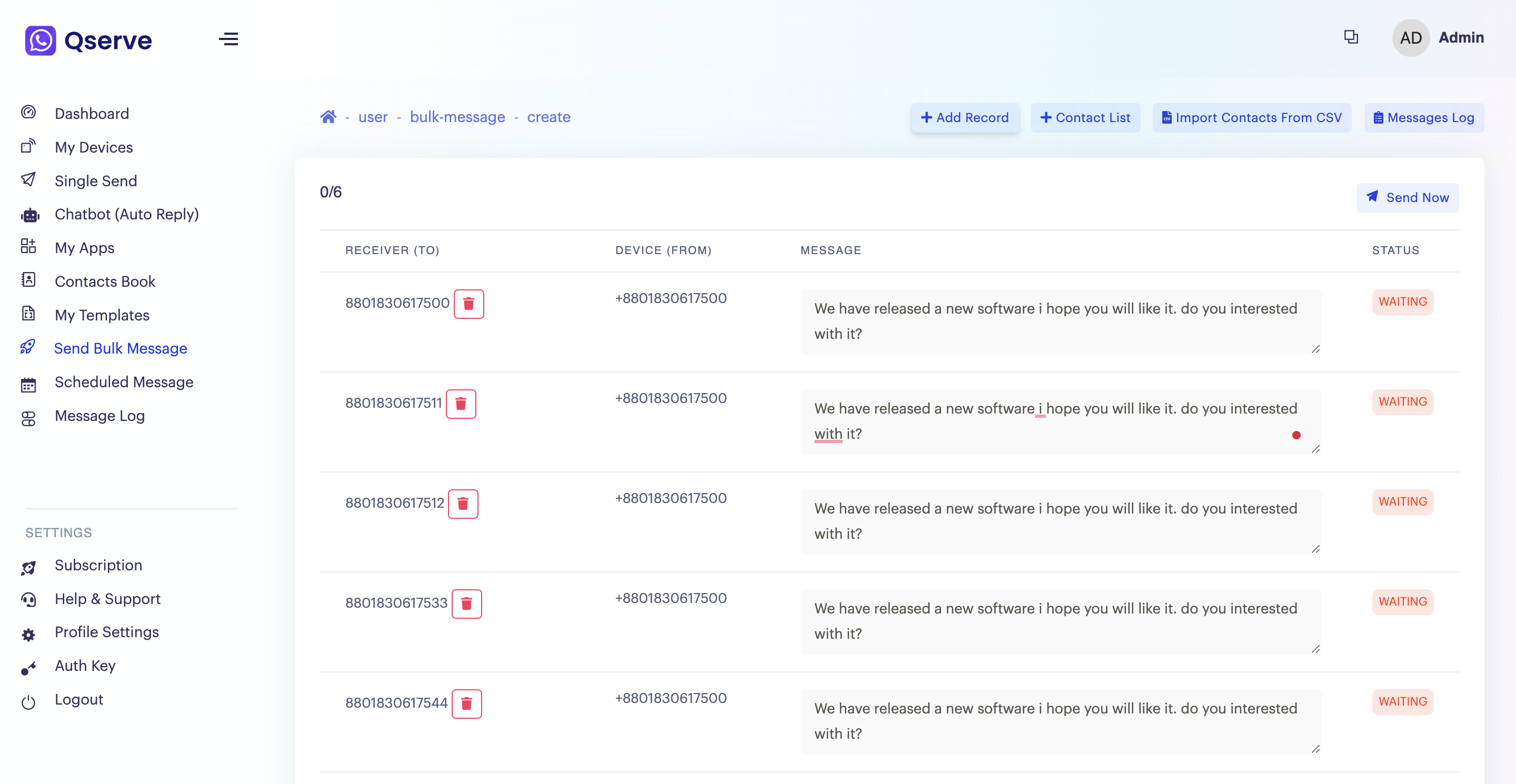 - Bulk message